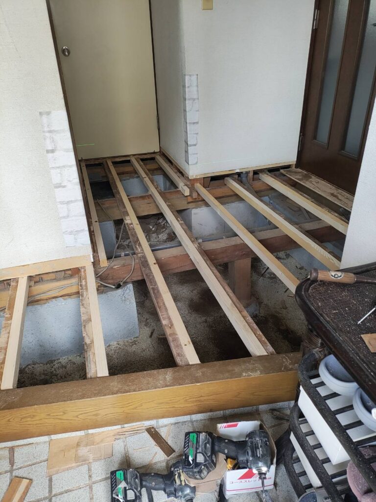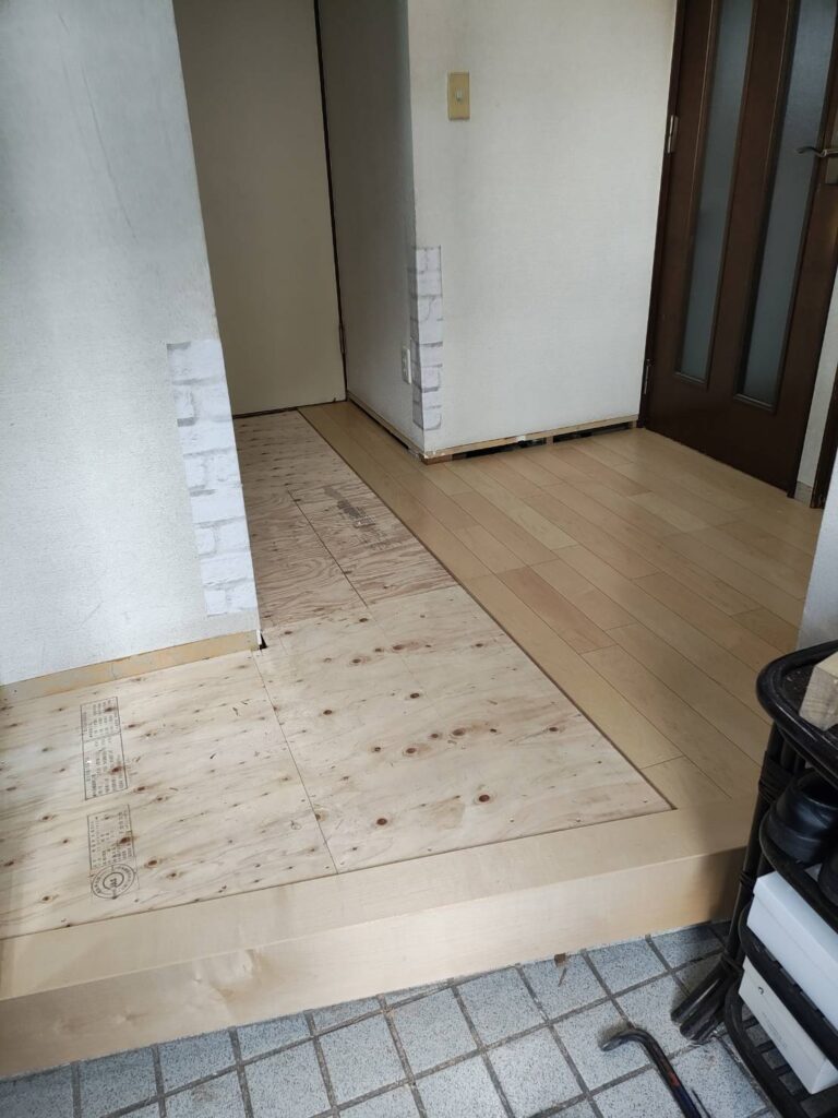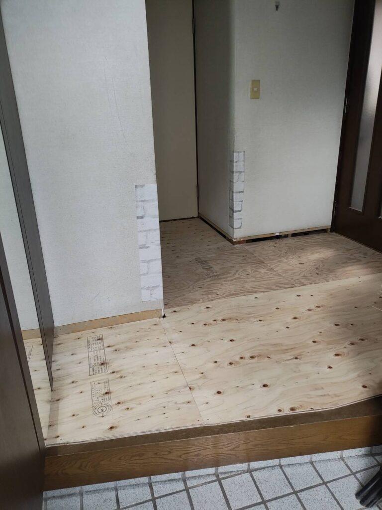 今回のケースは、既存フローリングを剥がして、補強して、新規のフローリングを貼る方法です。