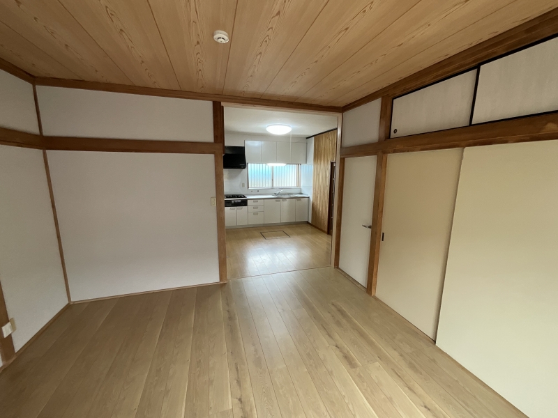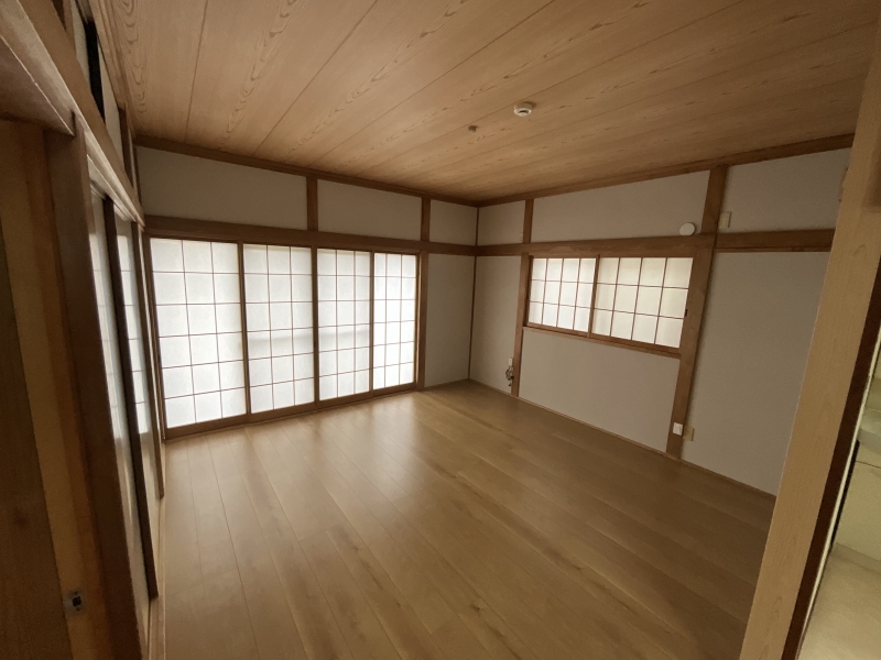 8帖を畳からフローリングに変更し、壁をビニールクロス張りにしました。
